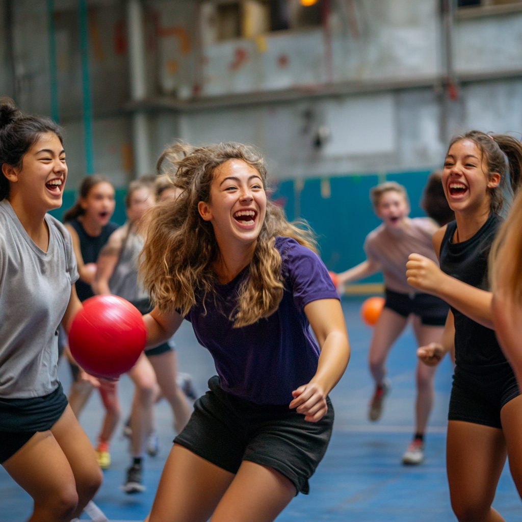 피구 경기에서 모두가 웃으며 경기를 즐기는 꿈